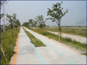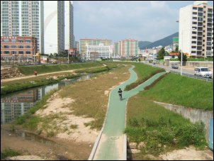 Another very suitable place for constructing bikepaths are riverbanks, a concept widely adopted in Europe and happily also in various places in Korea, like along the Han River in Seoul and here in Gimhae City.
