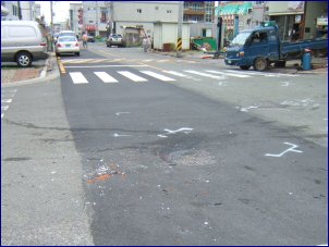 Car accidents not only leave traces in the form of painted marks on the road, but also by the broken glass and other debris, that is in general not removed and becomes a hazard for (especially) cyclists. This idea is not new: I wish a delegation of the Korean Traffic Police would make a working visit to Singapore and take a lesson from their Singaporean colleagues.