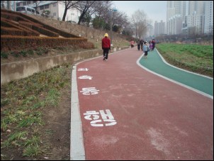 Korea needs bikepaths where you can freely ride a bicycle, without interruptions like on this photograph. It's a matter of taking the bicycle serious as a means of transport. Look also at the bad surface of this path.