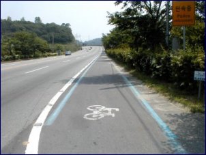 In my opinion, this is the best solution, for inside as well as outside urban areas. The smoothness of the surface should be not less than on the main road. The shoulder, if any, should be on the right side of the bike lane; wide enough (not on this picture, taken on road no. 2 between Masan and Jinhae) for emergency stops for cars.